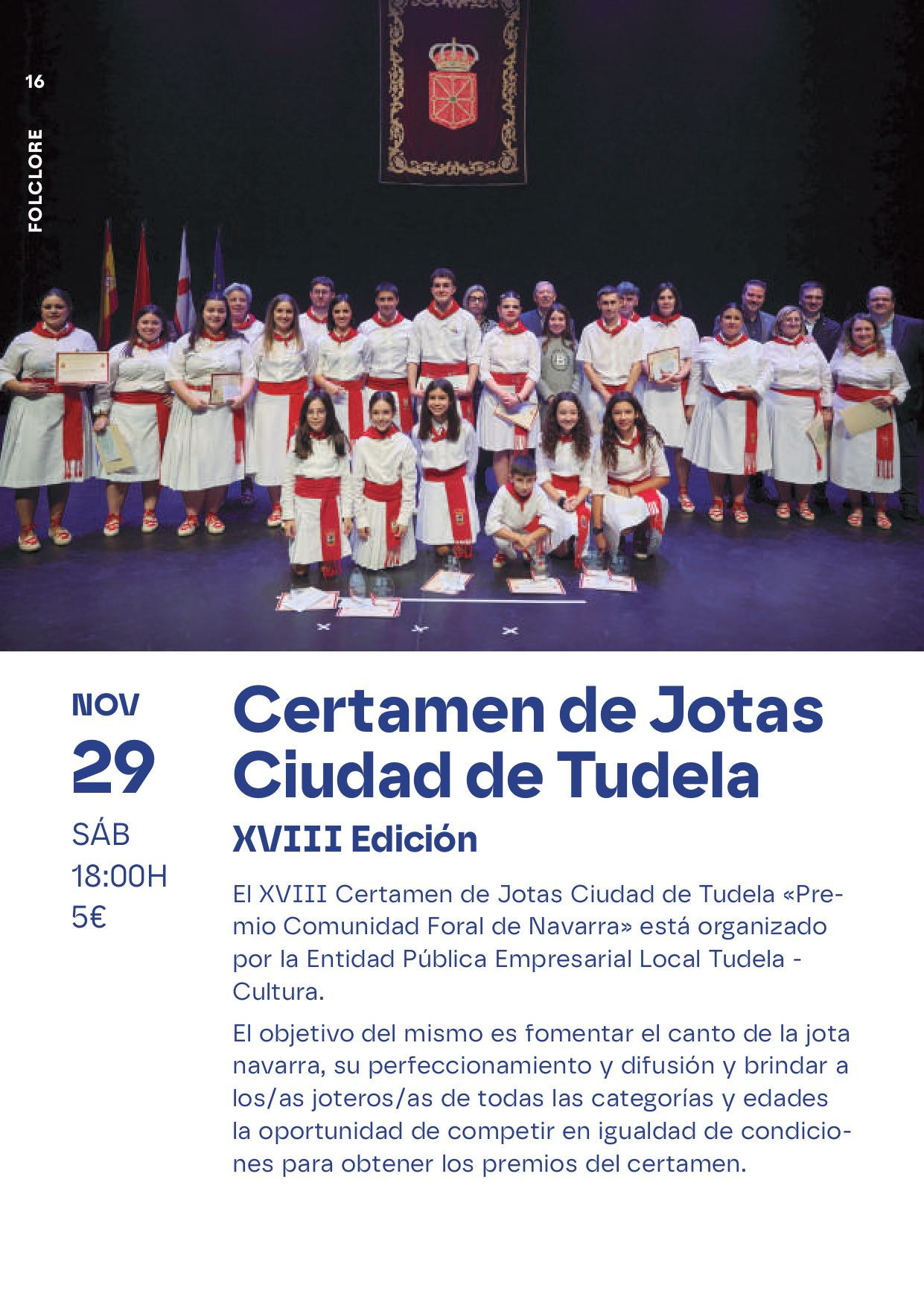 VER MÁSEl Certamen de Jotas Ciudad de Tudela “Premio Comunidad Foral de Navarra”, organizado por el Departamento de Cultura del Ayuntamiento de Tudela y patr...