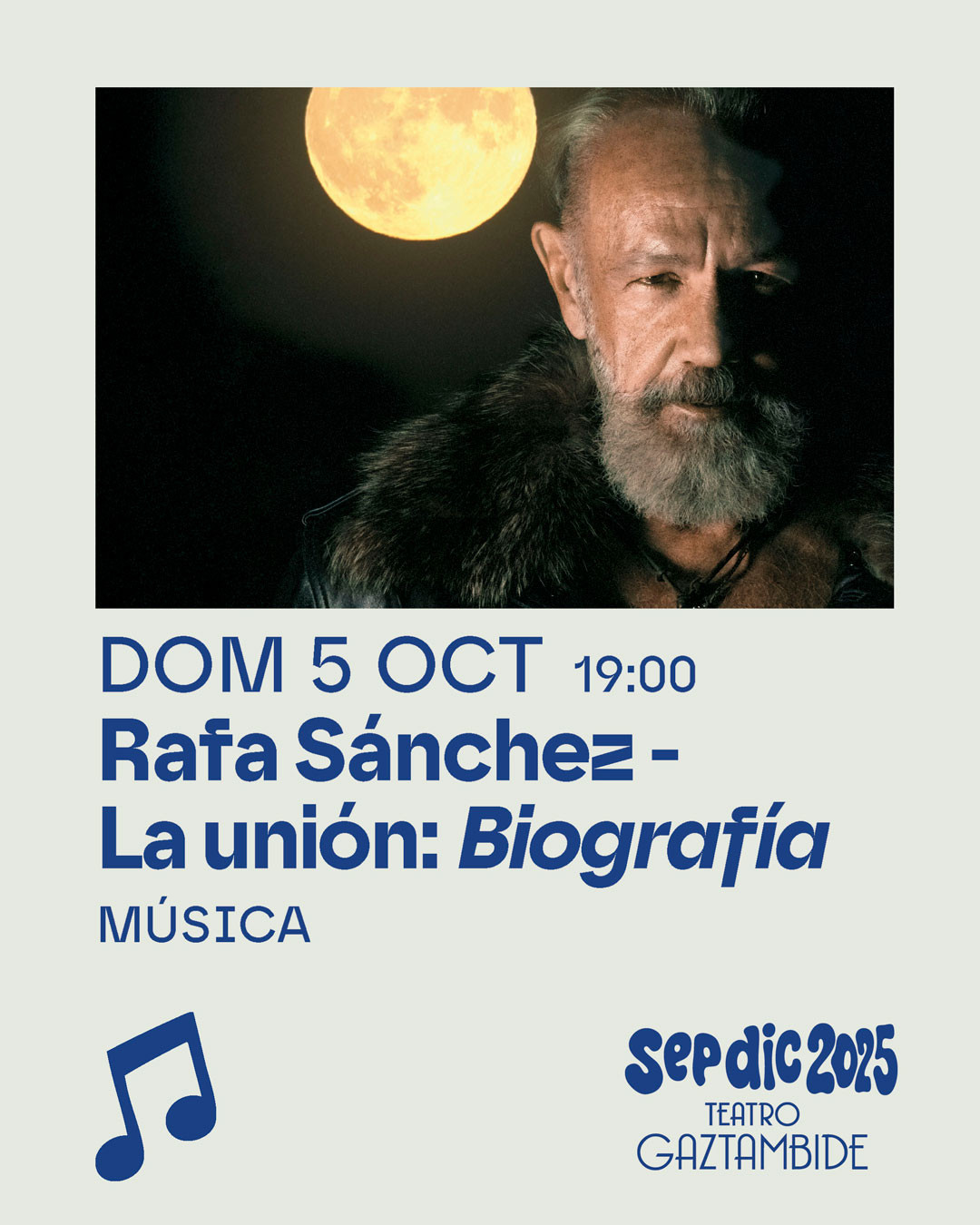 VER MÁSEste domingo 5 octubre, a las 19:00 h., el líder de una las bandas históricas de nuestra música, Rafa Sánchez, llega a Tudela para presentar “Biografí...
