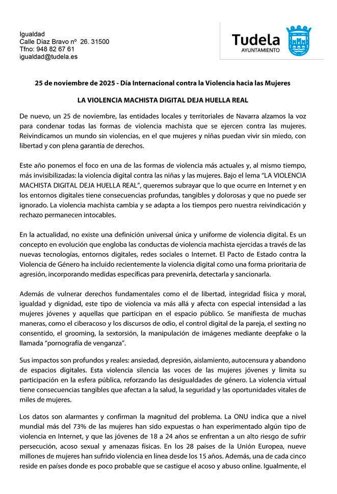El Ayuntamiento de Tudela, con apoyo de todos los grupos municipales, ha aprobado la Declaración Institucional conjunta de las entidades locales y ter...