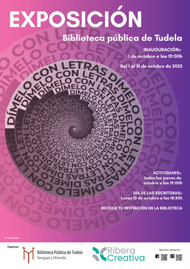"Dímelo con letras" a cargo de Ribera Creativa. Del 1 al 31 de octubre. Lugar: Biblioteca Pública de Tudela