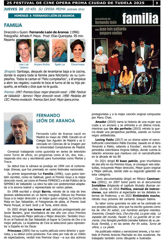 Primera película dirigida por Fernando León de Aranoa, quien acudirá al festival a presentar este trabajo y, además, participará como miembro del jurado del festival.