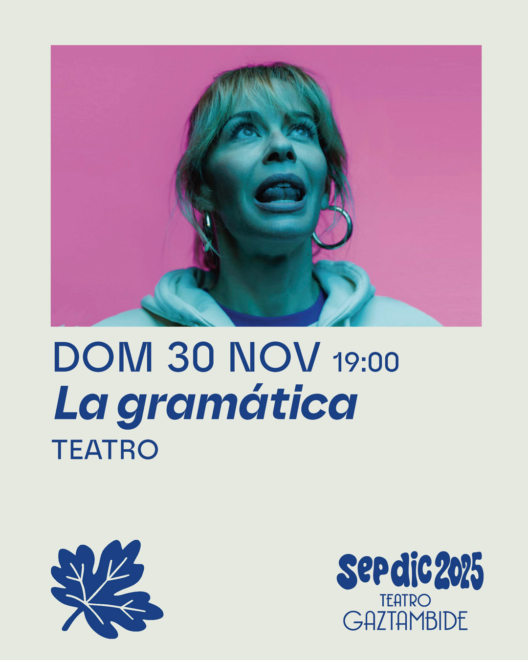 Por otra parte, el domingo 30 de noviembre, a las 19:00 h, se representa la obra “La gramática”, protagonizada por María Adánez y Joaquín Notario. Esta propuesta escénica, cuya dramaturgia y dirección corren a cargo de Ernesto Caballero, tiene una duración de 80 minutos.