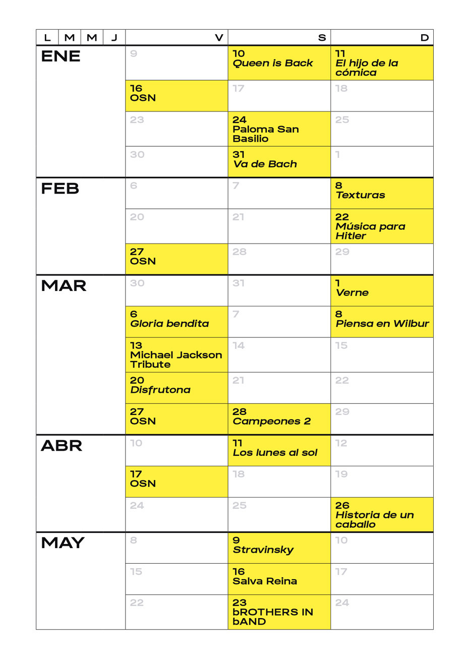 Por su parte, la venta de entradas para los conciertos de la Orquesta Sinfónica de Navarra y el tributo a Queen ya están a la venta desde hace semanas.