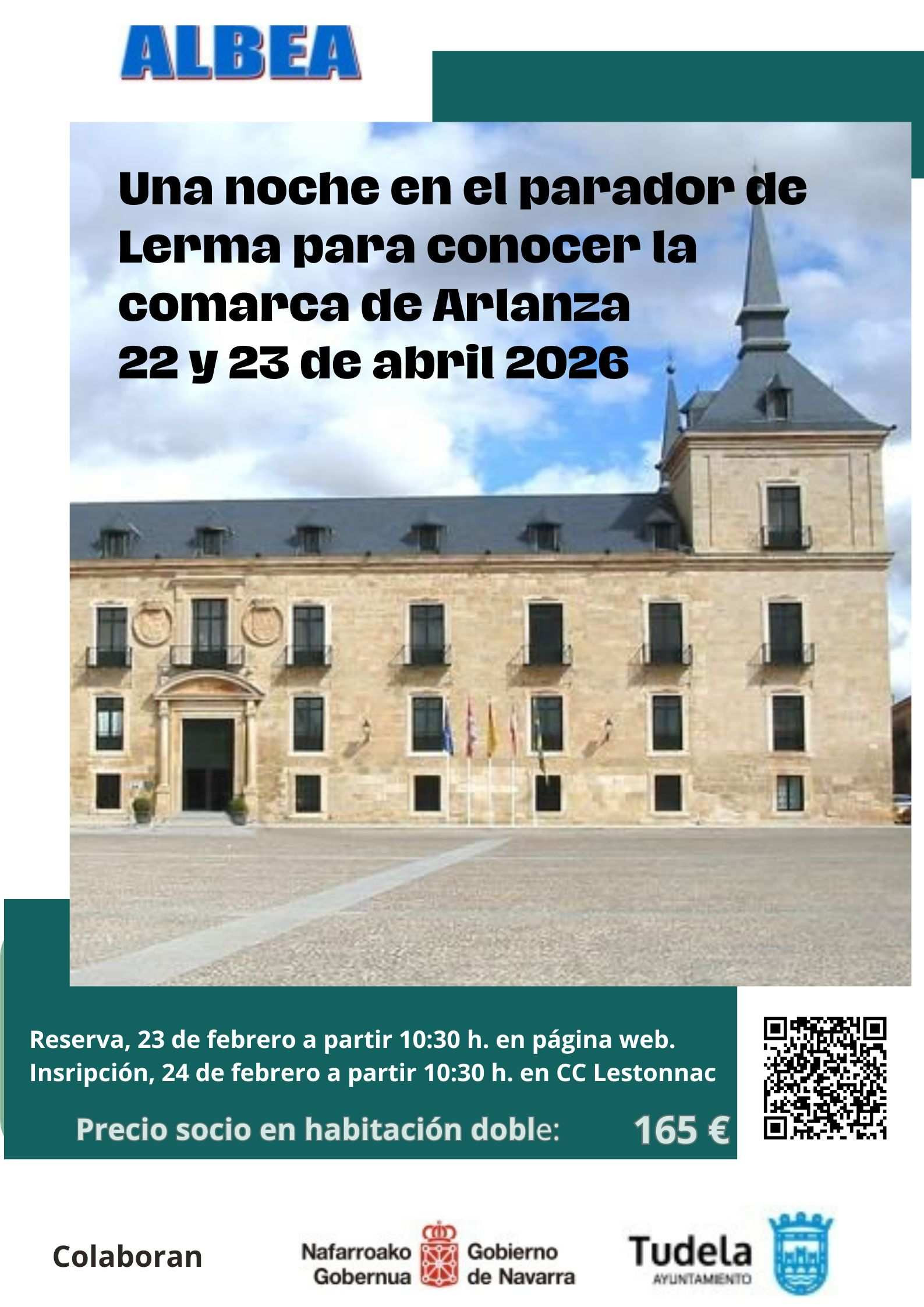 Día 23: A las 10:30 se pone en marcha la reserva para la excursión a Lerma, que tendrá lugar los días 22 Y 23 de abril de 2026. Que se cerrará a las 9:30 del 24 de febrero (Enlace a la reserva).