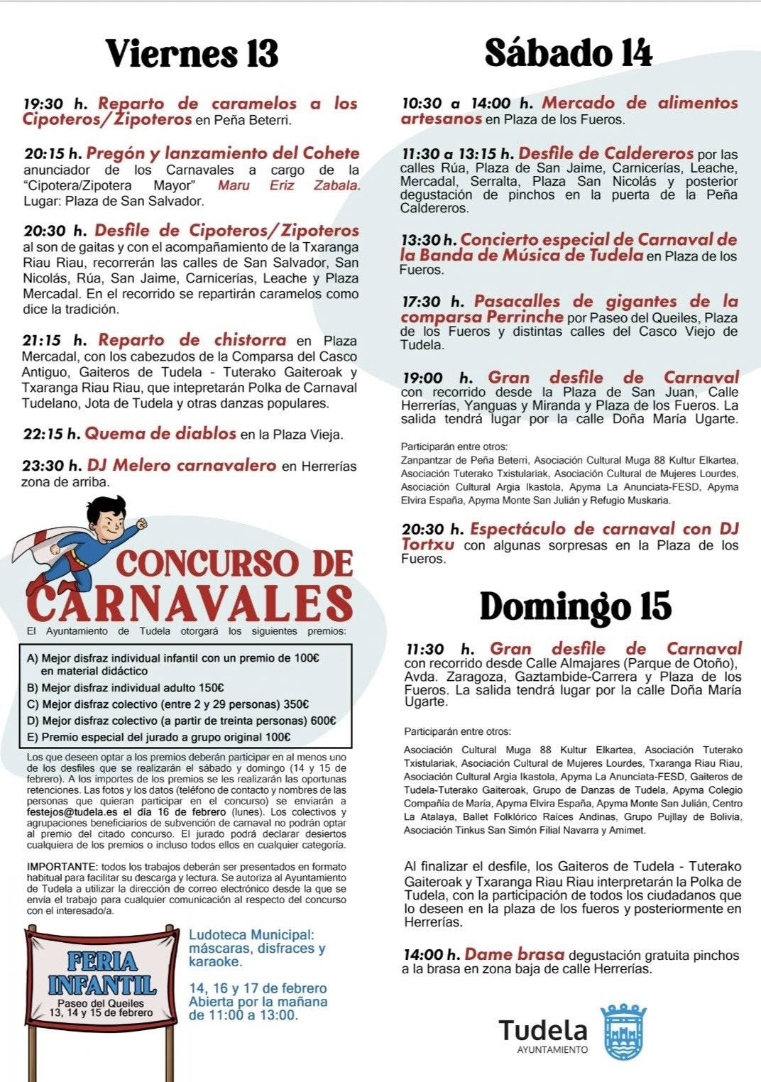 Asociación Cultural Muga 88 Kultur Elkartea, Asociación Tuterako Txistulariak, Asociación Cultural de Mujeres Lourdes, Txaranga Riau Riau, Asociación Cultural Argia Ikastola, Apyma La Anunciata-FESD, Gaiteros de Tudela-Tuterako Gaiteroak, Grupo de Danzas de Tudela, Apyma Colegio Compañía de María, Apyma Elvira España, Apyma Monte San Julián, Centro La Atalaya, Ballet Folklórico Raíces Andinas, Grupo Pujllay de Bolivia, Asociación Tinkus San Simón Filial Navarra y Amimet.