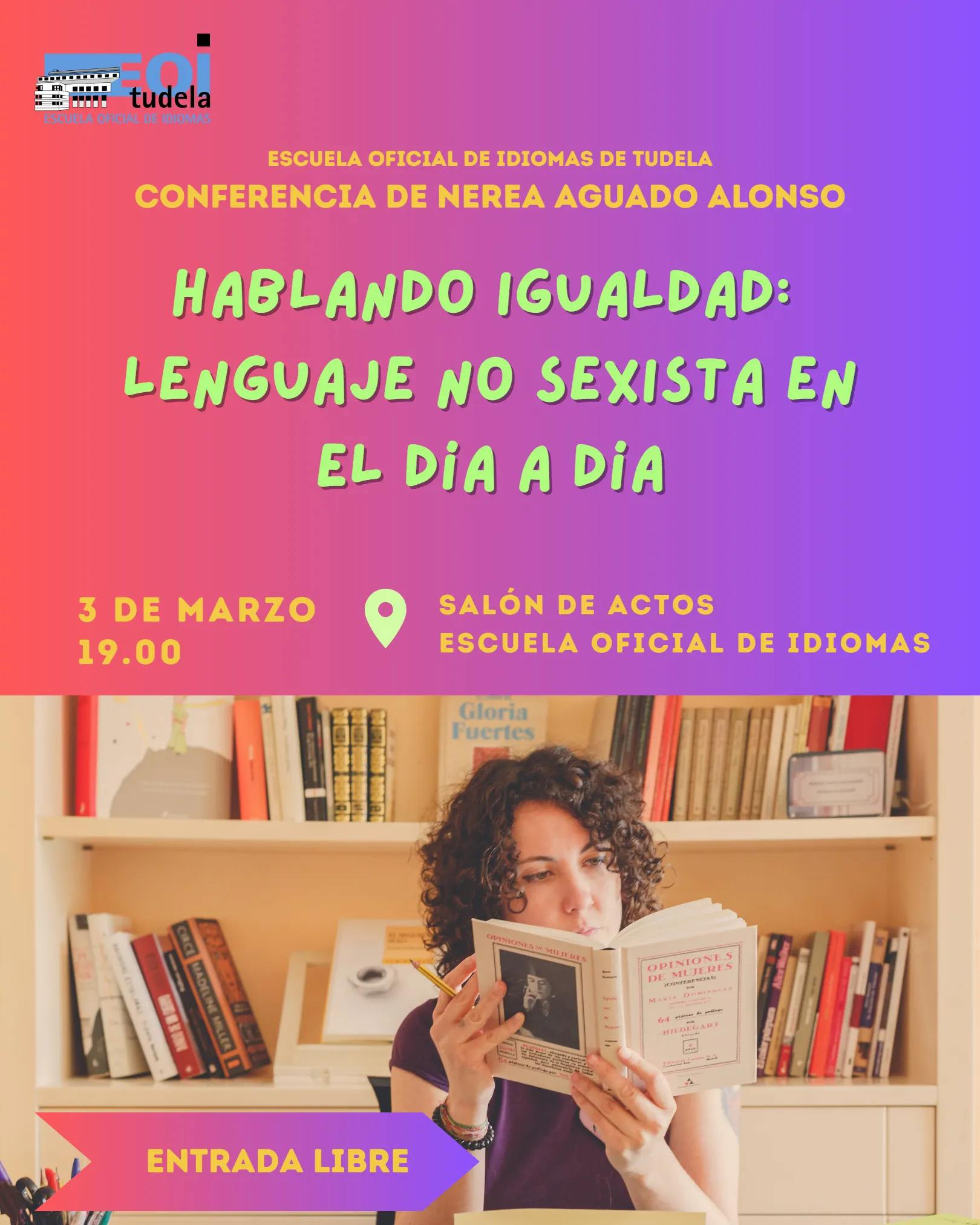 "Hablando igualdad: lenguaje no sexista en el día a día" A cargo de Nerea Aguado Alonso, con motivo del día de la mujer trabajadora. Actividad en castellano abierta a toda la ciudadanía. En el Salón de Actos de la EOI.