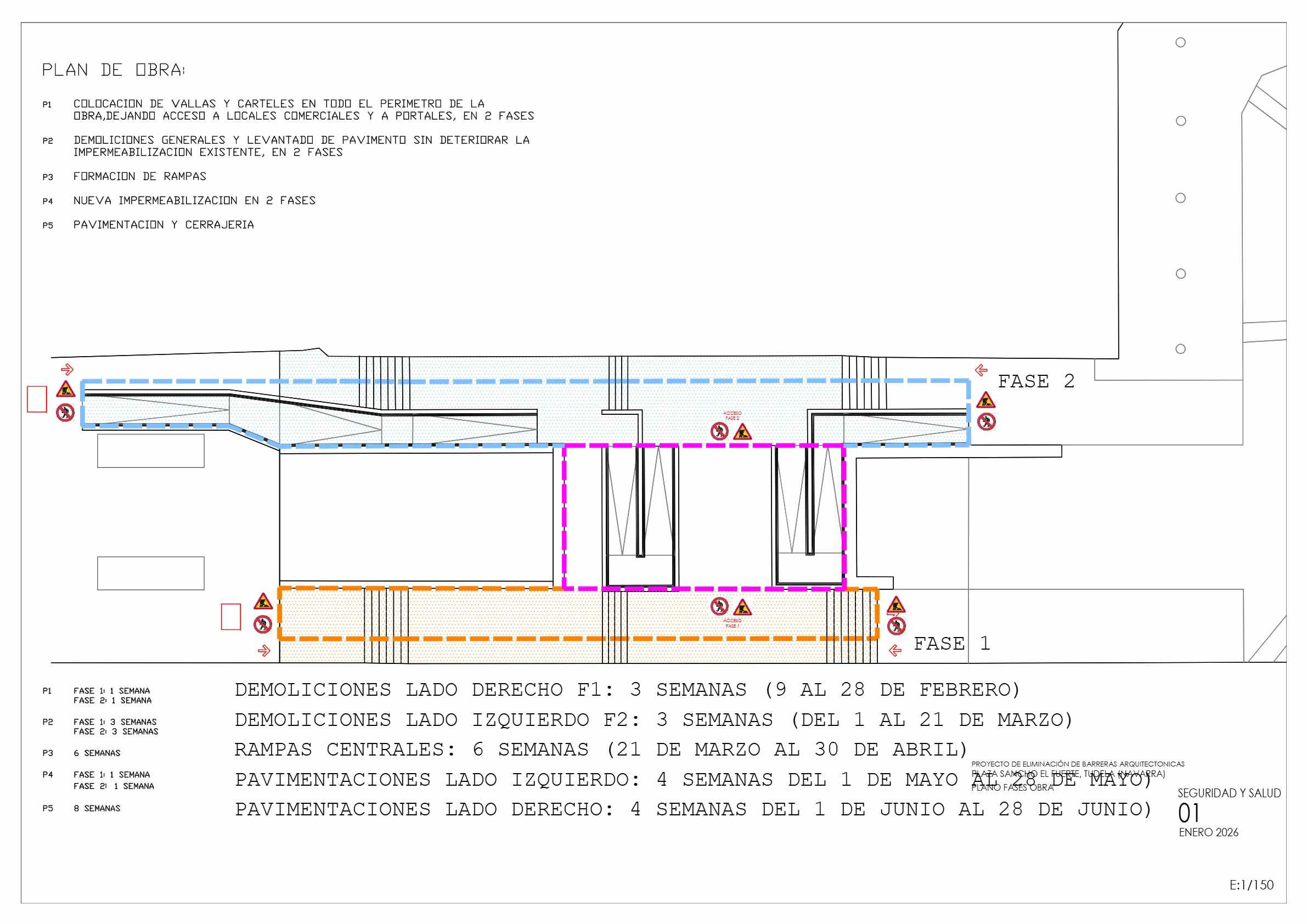 El próximo jueves 19 de febrero comenzarán los trabajos correspondientes a la fase 2 de las obras de eliminación de barreras arquitectónicas en la Plaza Sancho VII El Fuerte, con el levantamiento del pavimento en el ámbito de actuación previsto.