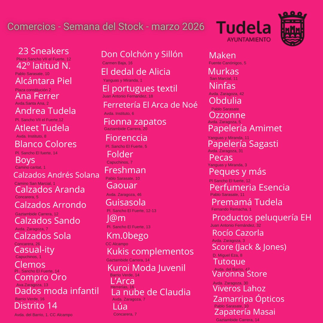 Del 2 al 7 de marzo de 2026, la ciudad de Tudela acogerá una nueva edición de la Feria del Stock, un evento que reunirá a 54 comercios locales, quienes ofrecerán su género de stock a las puertas de sus establecimientos, permitiendo a los ciudadanos acceder a productos de calidad a precios especiales.