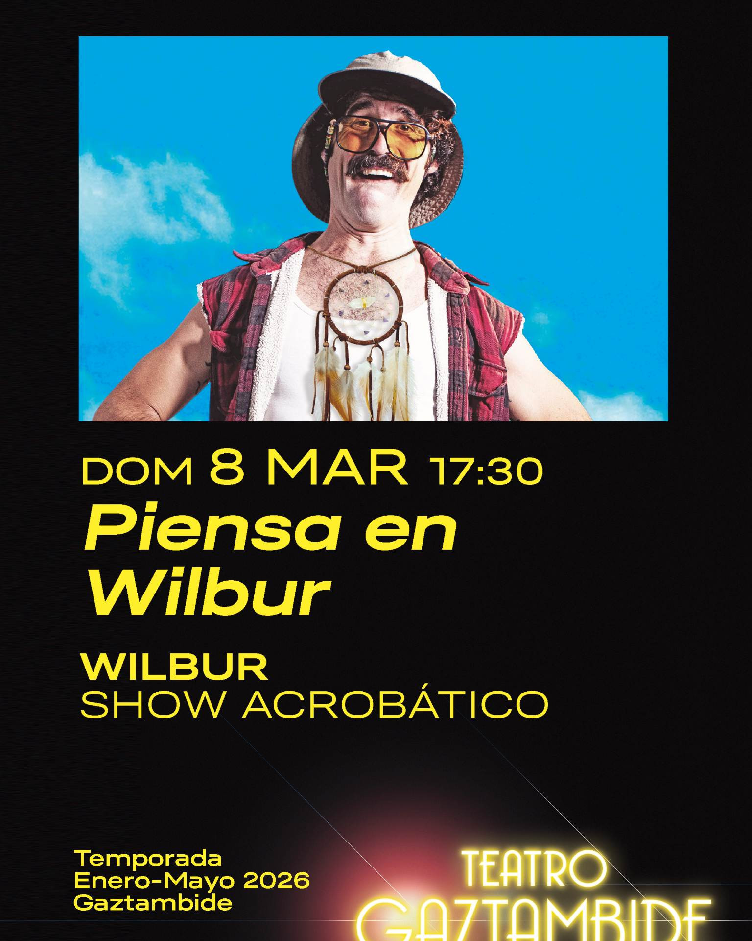 El domingo 8 de marzo, a las 17:30 h., el teatro acoge la propuesta familiar “Piensa en Wilbur”, protagonizada por Víctor Ortiz, más conocido como Wilbur, quien presenta un show para todos los públicos que combina acrobacias, humor y riesgo.