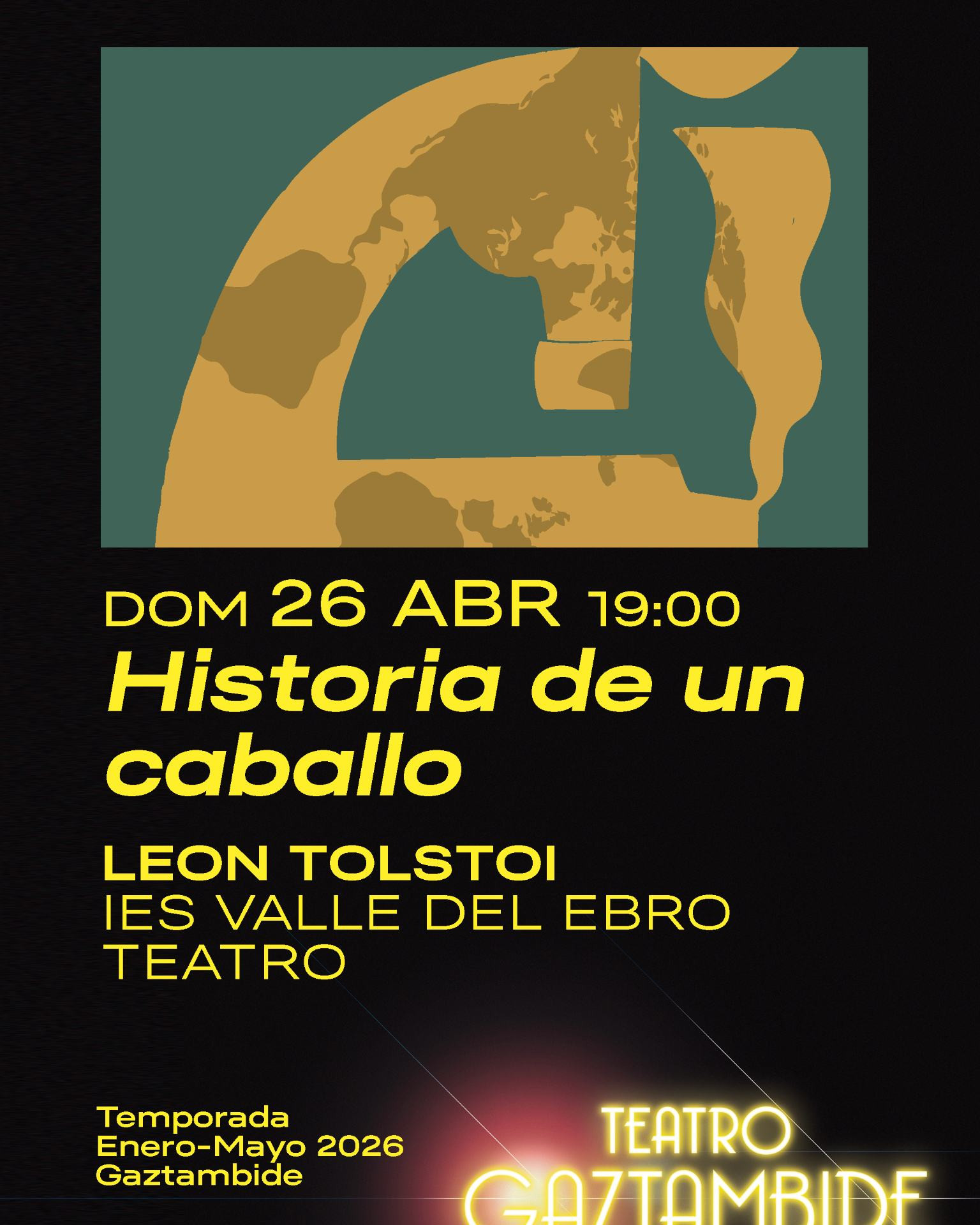 El grupo de teatro escolar del IES Valle del Ebro de Tudela, dirigido por Mª José Esteban, presenta este domingo, a las 19:00 h., en el teatro Gaztambide, Historia de un caballo. Esta obra de teatro, adaptación de la conmovedora obra de León Tolstói, propone una reflexión acerca de la importancia de las apariencias, el edadismo, el uso de los posesivos (tuyo-mío) como cizaña que envenena las relaciones humanas y la falta de empatía del ser humano.
